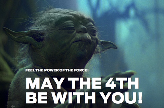 É hoje! Quatro de maio foi o dia escolhido para comemorar o dia geek "Star Wars Day", dia este que os fãs da saga saem mundo a fora em flashmobs diversos, encenações em praças públicas das cenas do filme, e até vão trabalhar fantasiados. E o dia 4 de maio foi eleito por conta de um trocadilho do filme: “Que a força esteja com você”, que em inglês é: "May the force be with you", que soa "May the fourth" - em português “quatro de maio”, e por isso a data do dia de hoje.